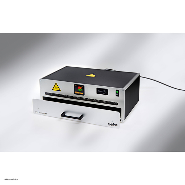 The M series constitutes perfect UV chambers for laboratory or small-scale production. They differ primarily in size of the UV irradiation area and are therefore suitable for different batch sizes. The UV devices are fitted with an electronic timer from 0 – 999 hrs as well as an operating hours counter.
